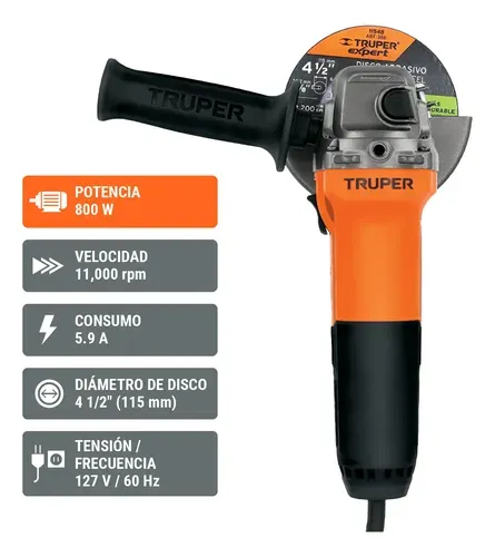 ESMERILADORA ANGULAR 4 1/2" - 800W - TRUPER | ESMA-1/2A9